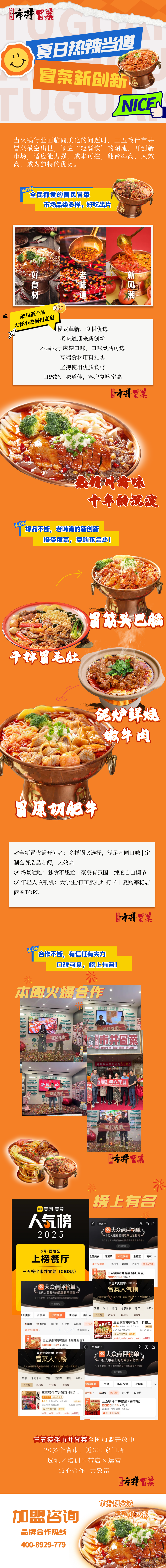 三五筷伴鸡公煲加盟品牌实力强,川渝口味三五筷伴重庆鸡公煲深受消费者喜爱,在杭城三五筷伴鸡公煲加盟店每家店都能赚钱,有些老板甚至准备开第三家第四家门店,鸡公煲麻辣鲜香加之它的口感十分鲜美,